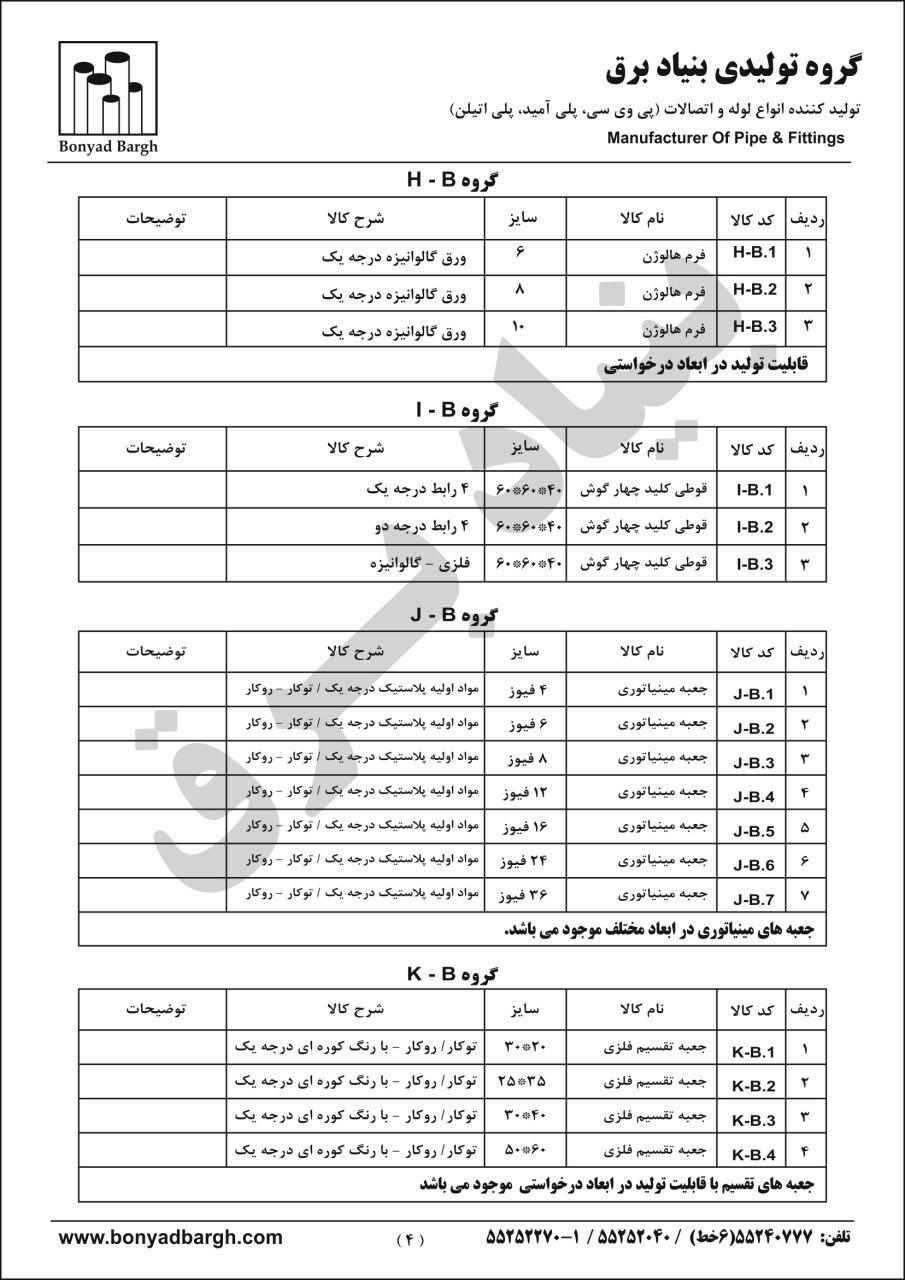 لیست محصولات جعبه تقسیم پلاستیکی - رابط پی وی سی - سیم افشان
