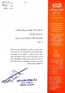 تقدیرنامه تشکر از حضور فعال گروه تولیدی بنیاد برق در هفدهمین نمایشگاه بین المللی صنعت برق ایران – آبان 1396 ادامه مطلب » 1396-12-06